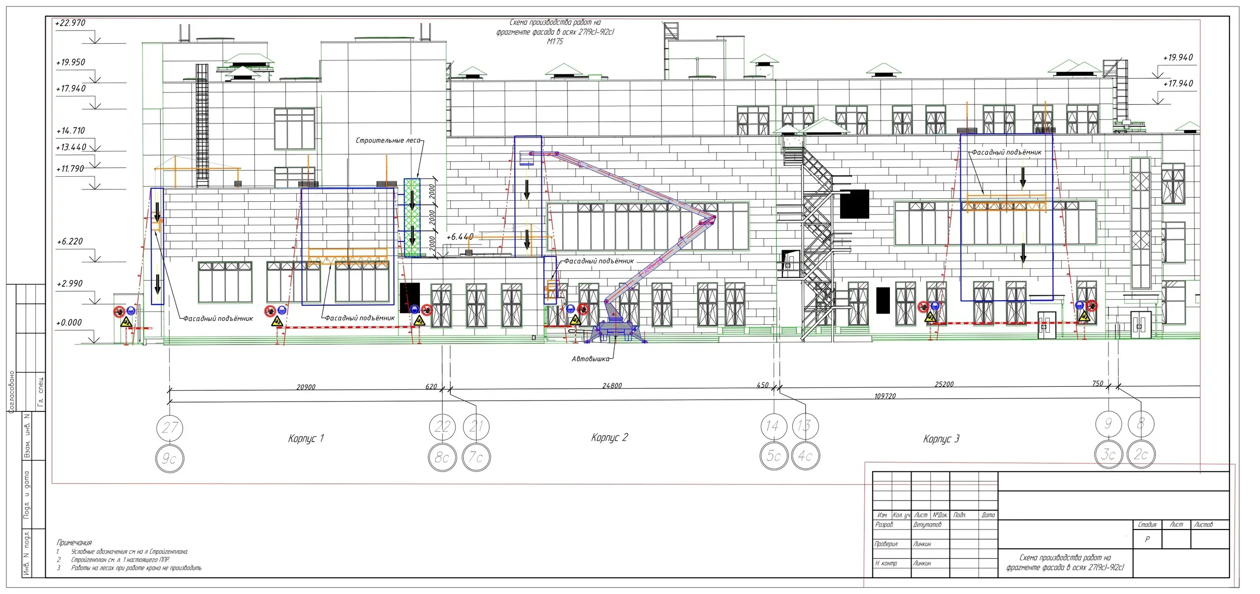 В ППР на фасадные работы указаны следующие пункты: