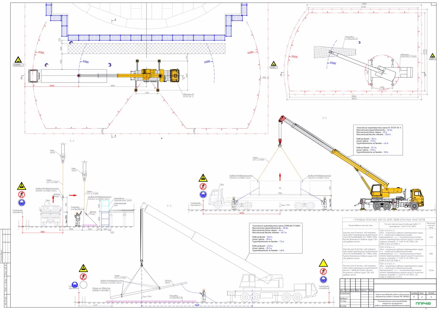 Проекты производства работ с использованием подъемных сооружений (ППР пс) разрабатываются с учетом требований Приказа Ростехнадзора от 26.11.2020 N 461 "Об утверждении федеральных норм и правил в области промышленной безопасности "Правила безопасности опасных производственных объектов, на которых используются подъемные сооружения". Поэтому в процессе создания таких документов необходимо учитывать как требования по безопасной эксплуатации кранов на автомобильном шасси, так и технологические аспекты ведения монтажных и погрузочно-разгрузочных работ. Среди таких аспектов можно выделить персональные инструкции для всех участников такого процесса, а также подробные схемы строповок и складирования материалов, конструкций и оборудования. Не стоит забывать про определение опасных и зон работы техники и координатную Защиту.