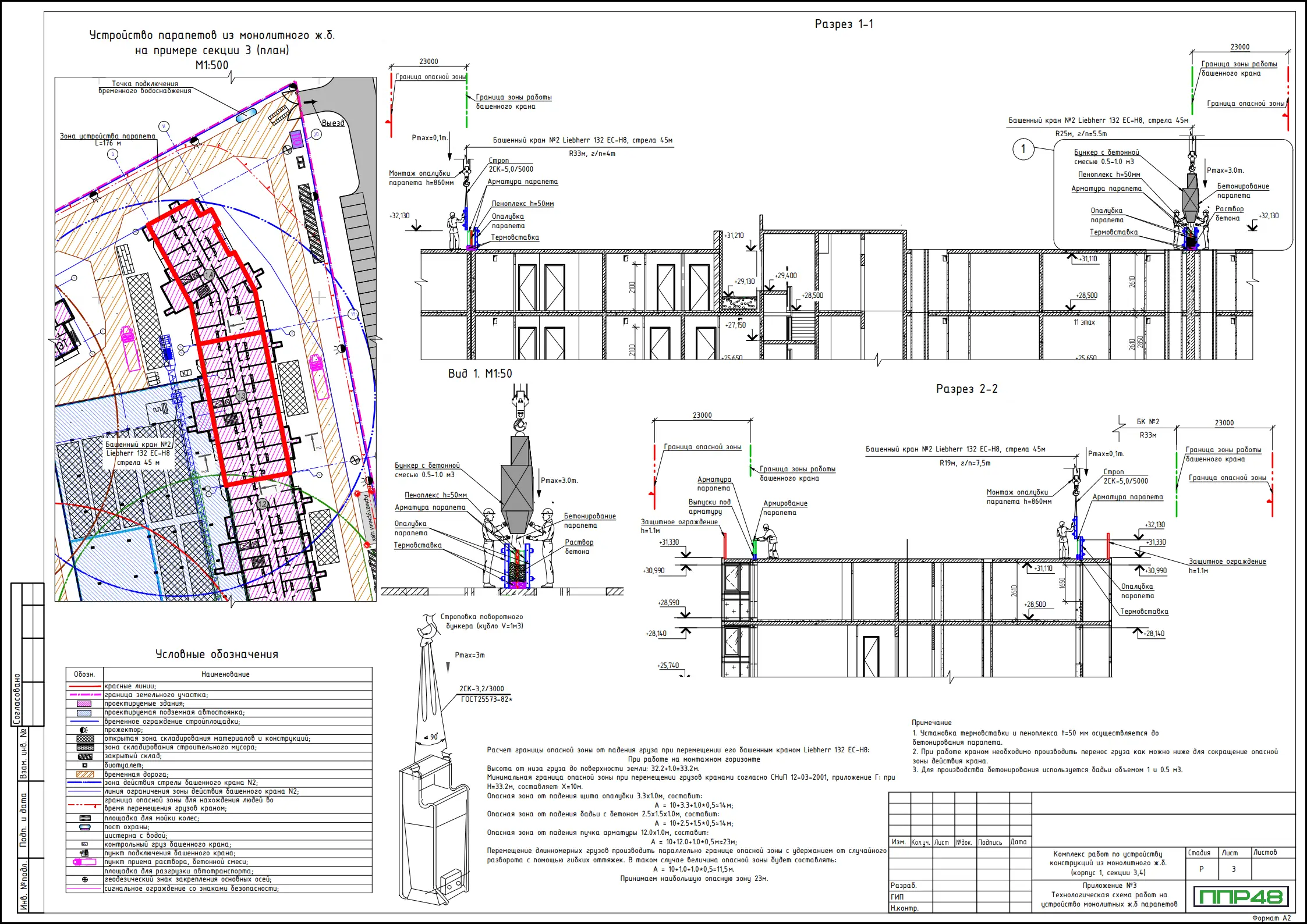 Этапы подготовки и проведения работ на стройплощадке включают подготовительный период, разработку плана работ и полный набор исполнительной документации. В составе ППР на подготовительный период учитываются новости отрасли, требования к защите окружающей среды и охране труда, а также спецификаций по монолитным и монолитно-монтажным работам. Для безопасного проведения работ на высоте и внутри помещений предусмотрены регламенты по применению слаботочных систем, а также по размещению оборудования и материалов на участке.