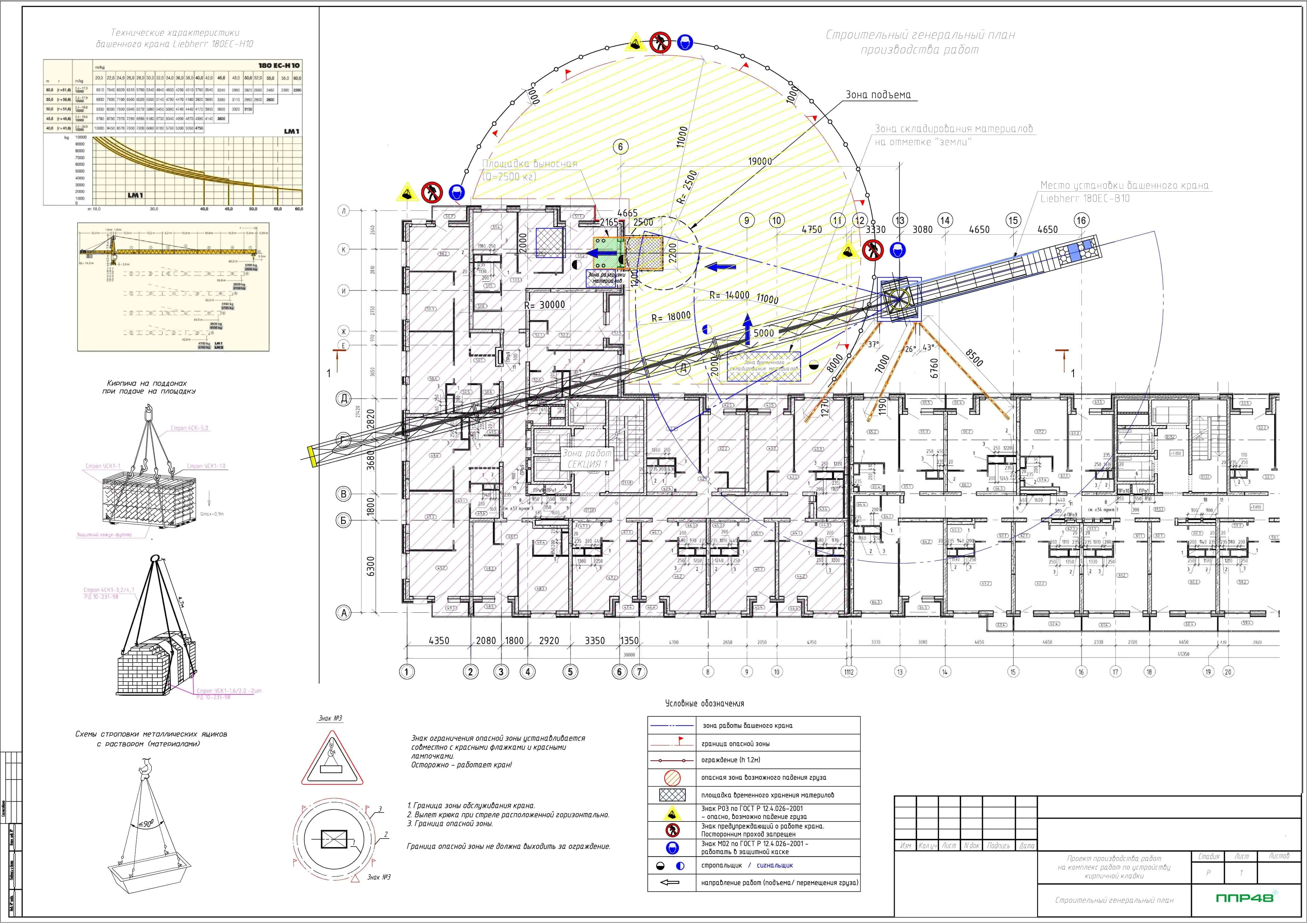 - указания мест расположения техники, грузоподъемного оборудования;