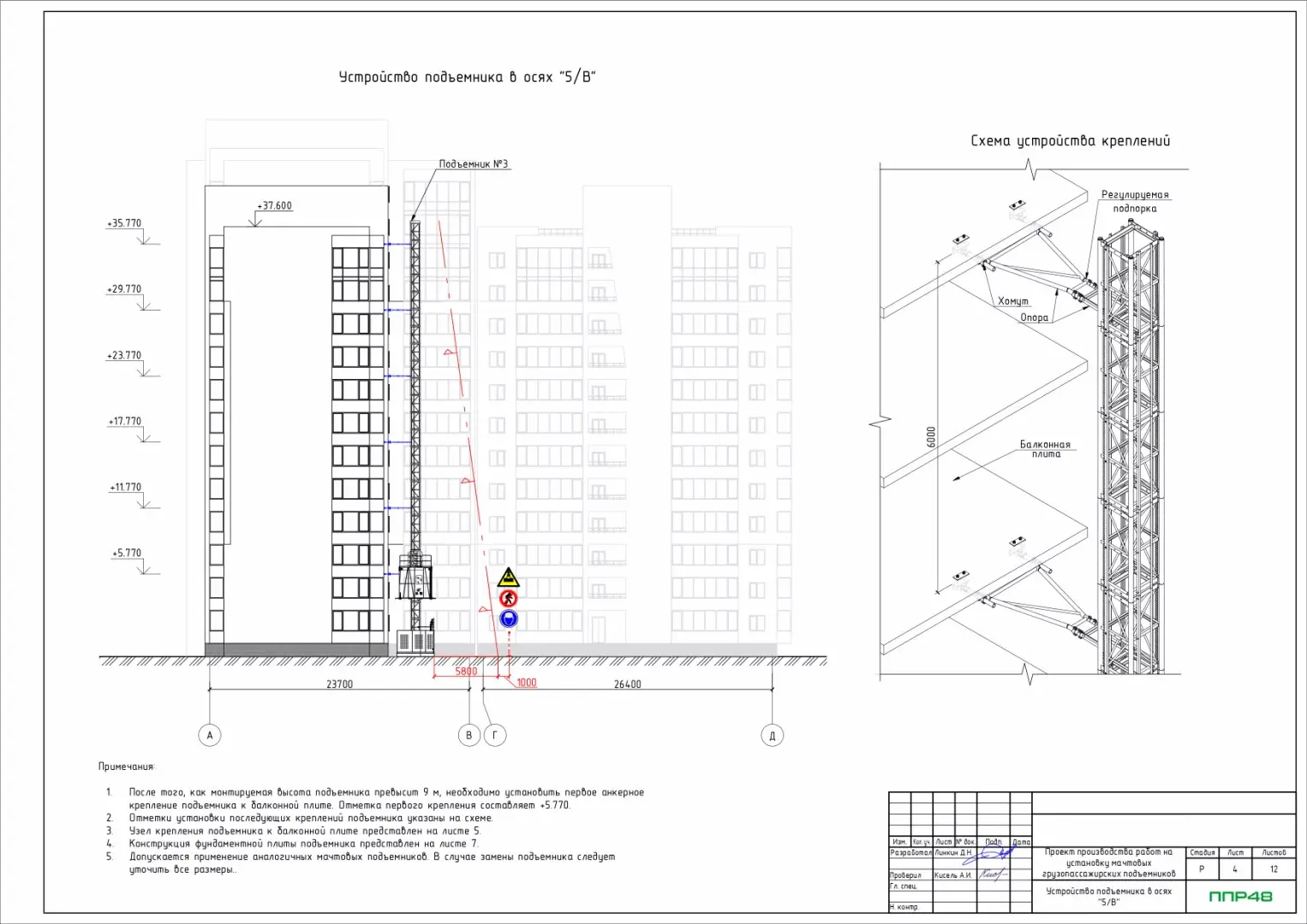 Особенности разработки ППР на работы с мачтового фасадного подъемника