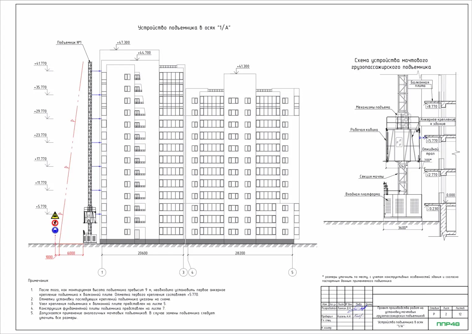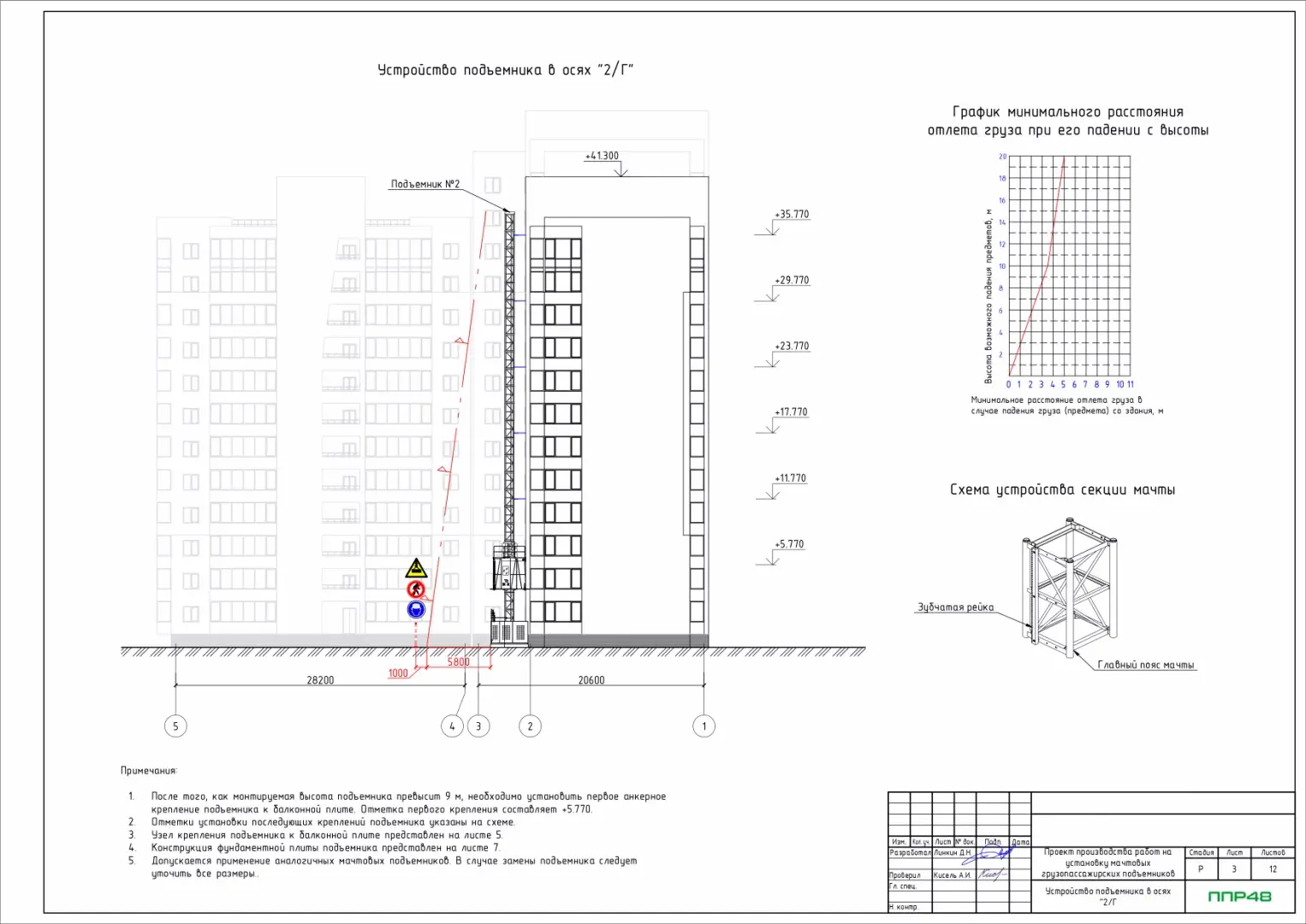 Особенности разработки ппр на мачтовый подъёмник, фасадный подъёмник, АГП.