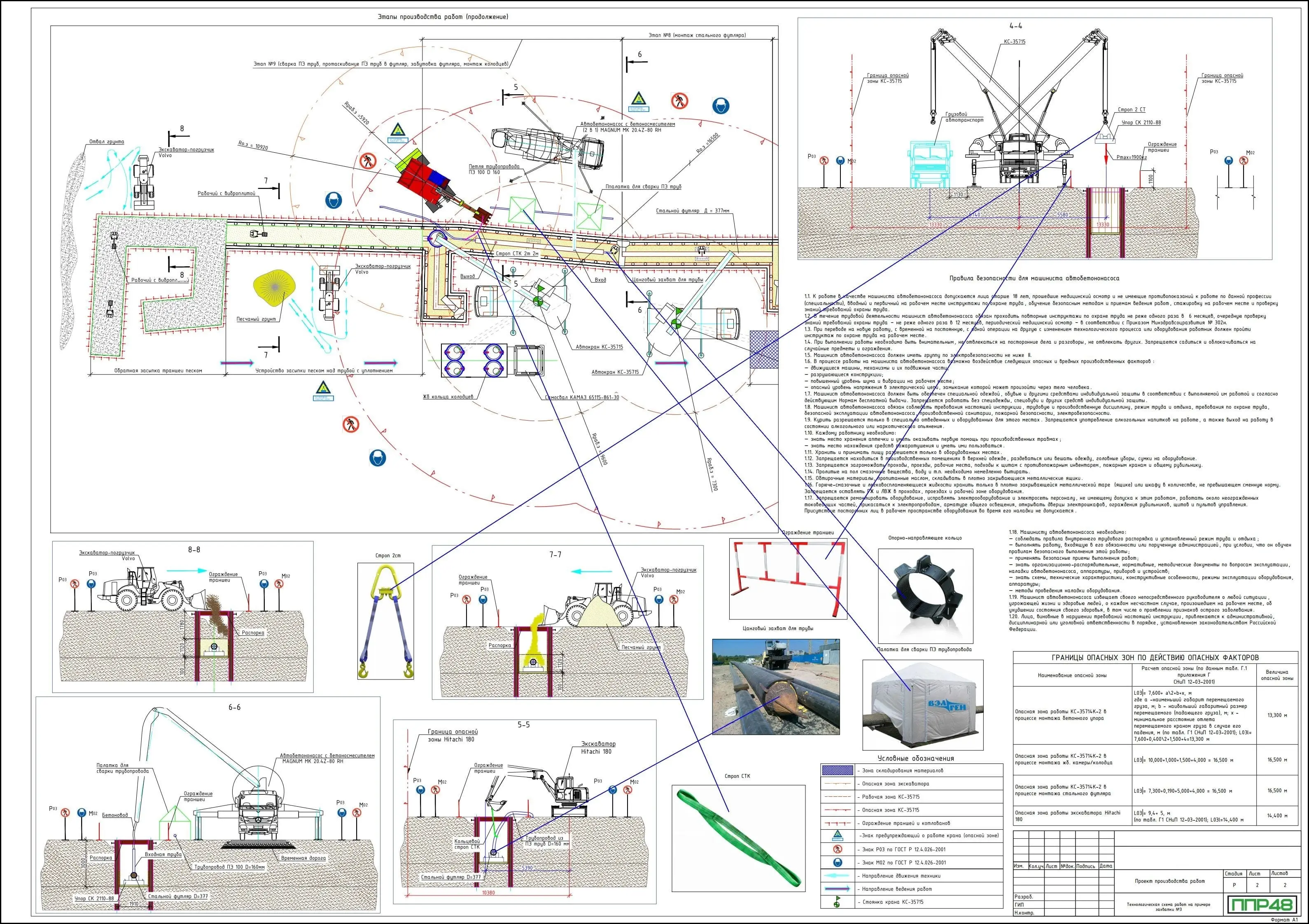 Разработка ППР для внутренних и внешних сетей имеет ряд существенных различий. Это обусловлено тем, что при устройстве наружных сетей, строительные организации используют крупногабаритную технику, схемы движения которой необходимо отражать в графической части проекта. В проектах на внутренние инженерные сети такая техника используется намного реже, поэтому графическая часть требует минимальных решений.