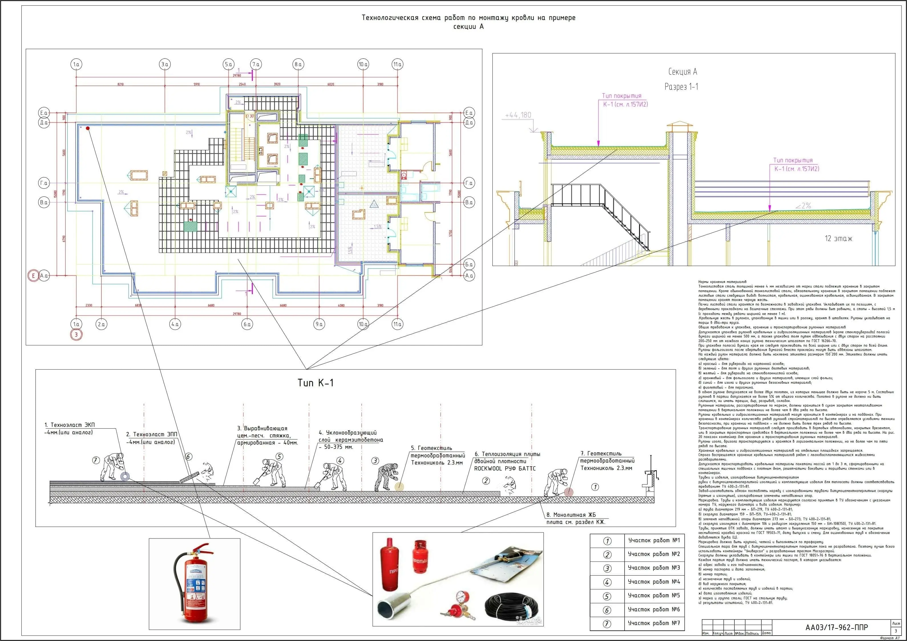 ППР на монтаж кровли - это проект, целью которого является описание технологических процессов по возведению несущих конструкций, кровельного пирога и других частей крыши. Документ можно условно разбить на несколько основных технологических карт:
