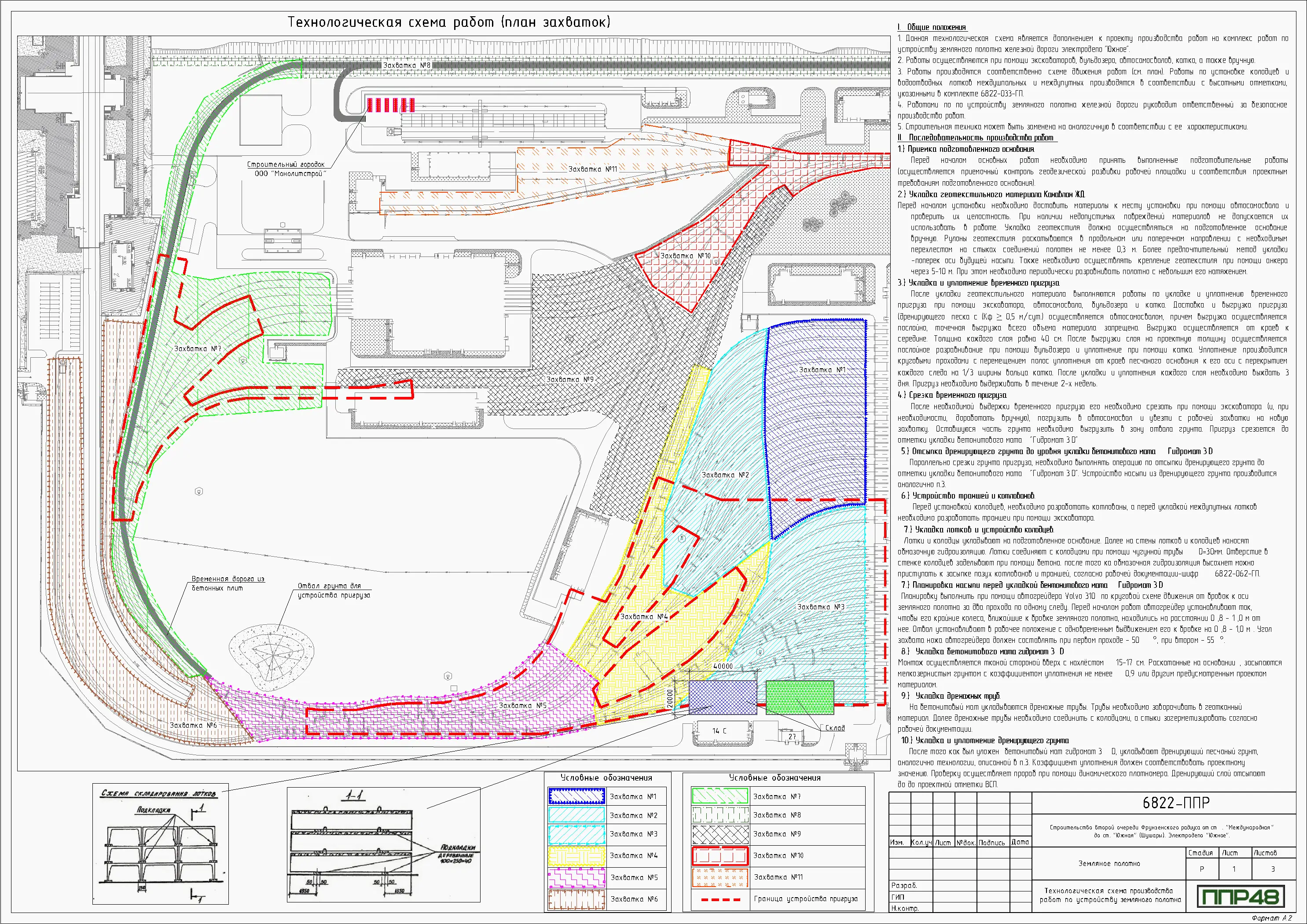Этот проект описывает технологию выполнения каждого этапа дорожных работ, порядок и последовательность строительных операций, а также средства обеспечения безопасности на объекте.